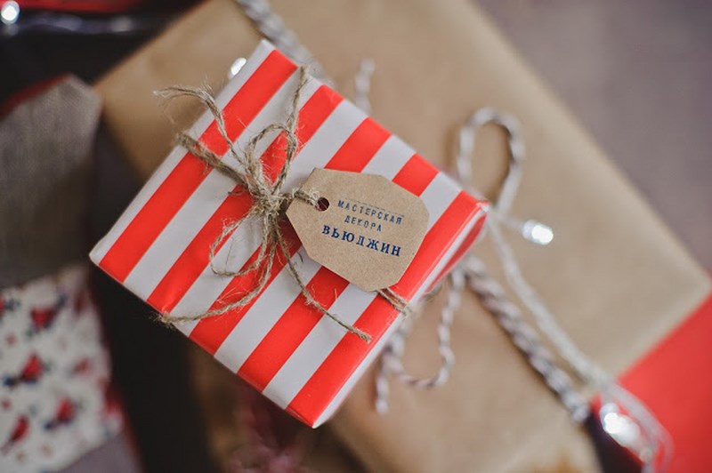 В стиле красно-белой новогодней фотосессии упакованы и подарки.