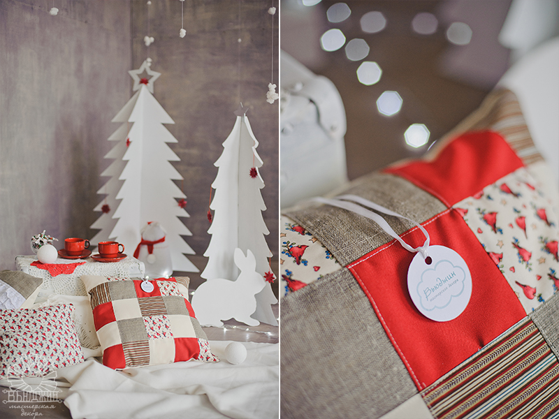 Снежные гирлянды, чай с конфетами. Новогодние подушки сшила для нас Наталья Полещук.