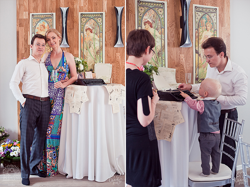 В зоне пожеланий установили раритетную печатную машинку, на которой гостям можно было напечатать пожелания для Насти на винтажных бланках, или написать чернилами и пером на винтажных открытках.