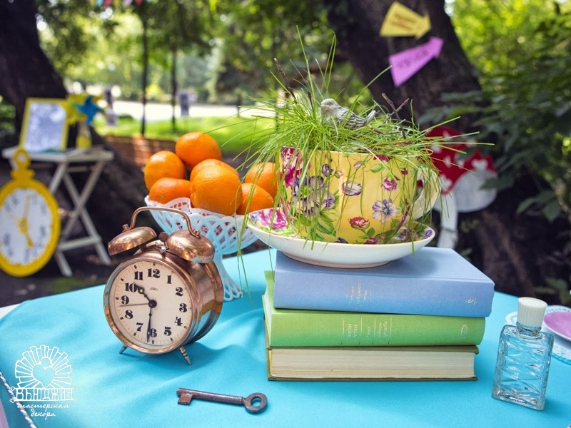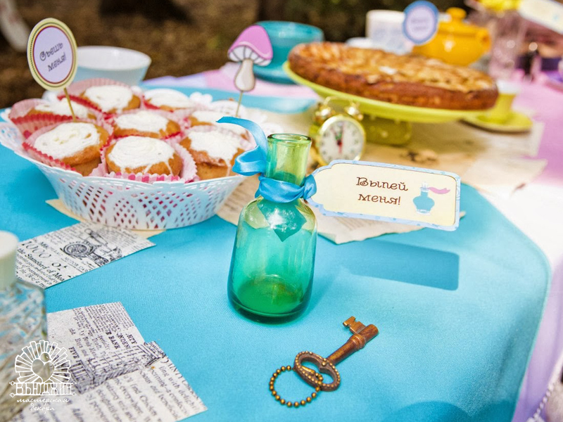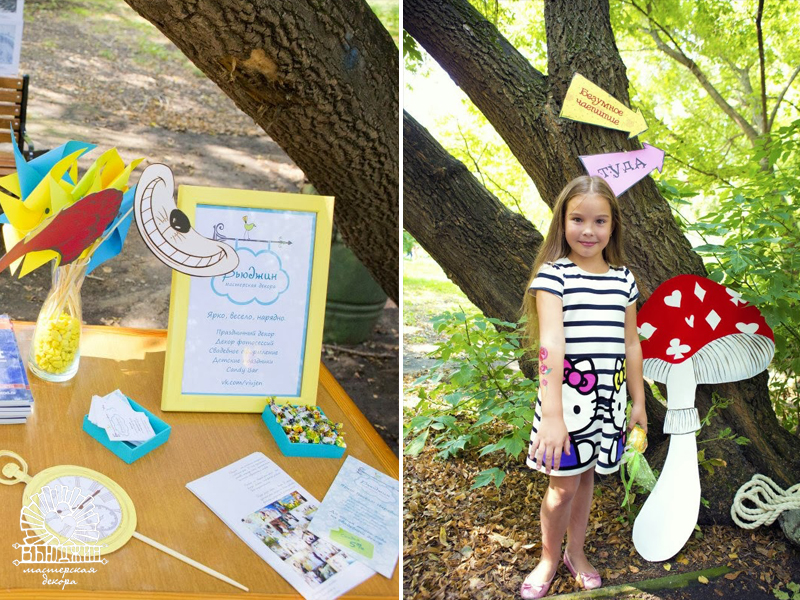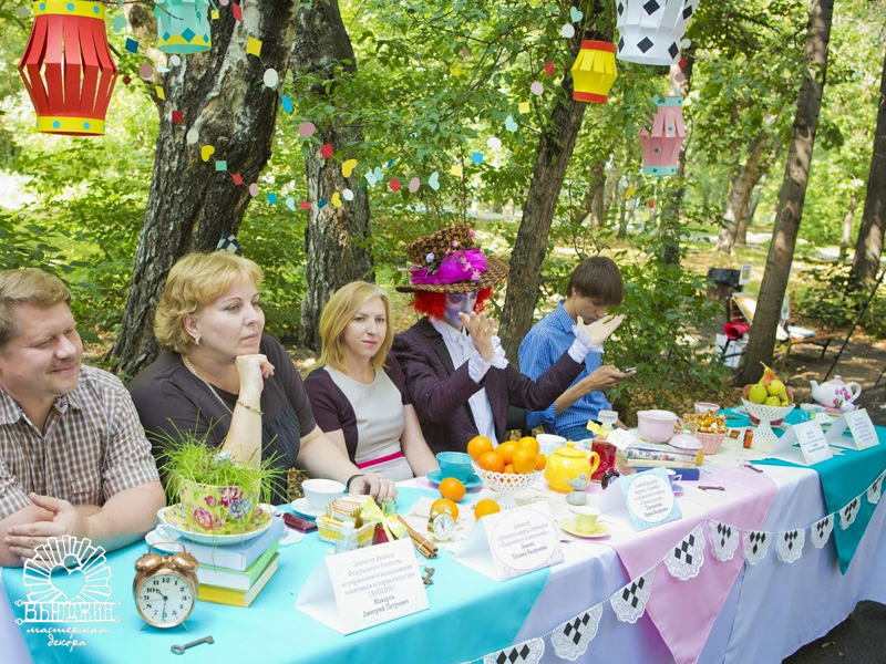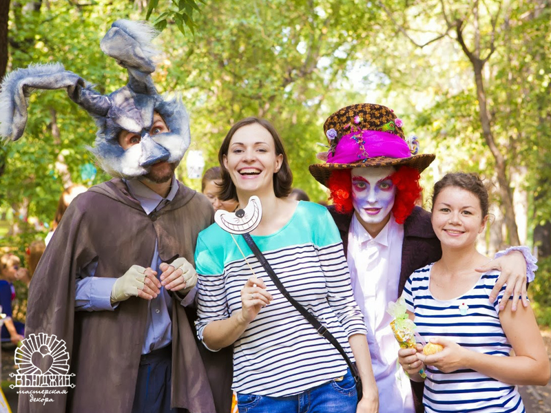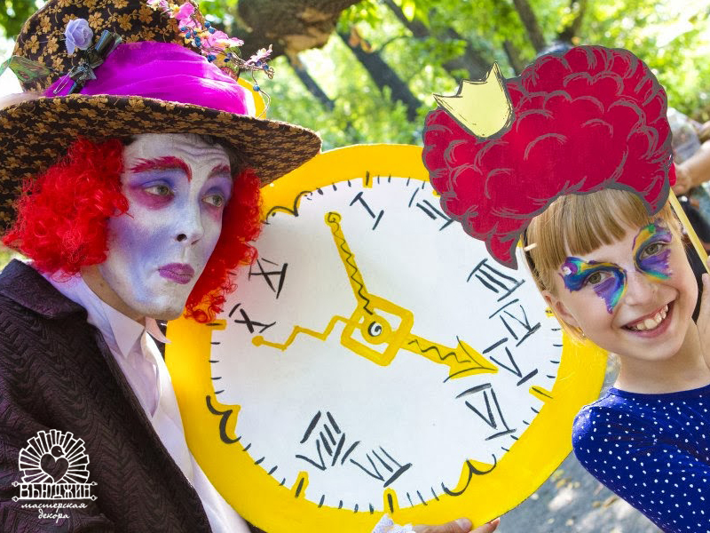 Алиса рисовала забавный аквагрим всем желающим, Кролик играл с детьми в подвижные игры, а Безумный Шляпник предлагал всем достать из шляпы конфеты.