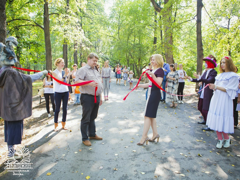 В честь празднования дня города информационный портал "Стройка" подарил Харитоновскому парку и всем жителям города новые скамейки. Нашу мастерскую пригласили оформить открытие аллеи в стиле сказки «Алиса в Стране чудес».