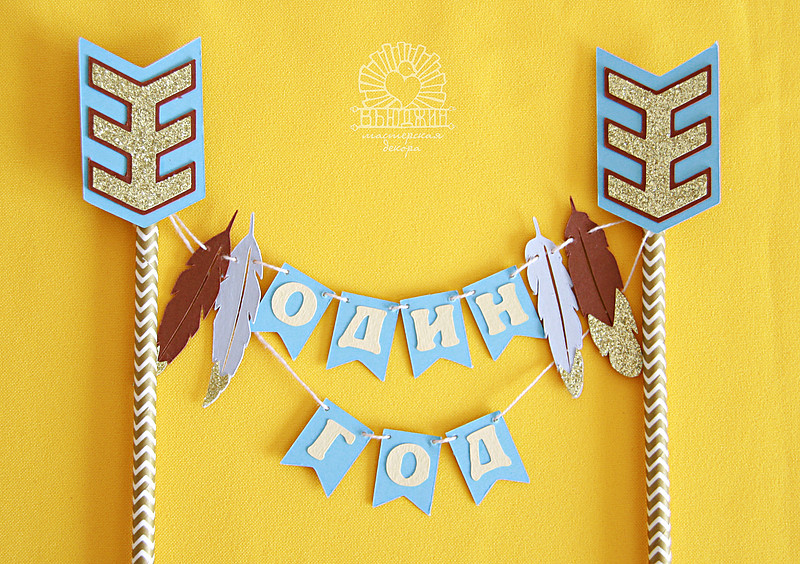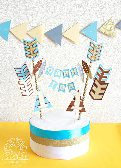 - Топпер на торт с двумя гирляндами флажков прекрасно подойдёт на небольшой первый тортик для малыша