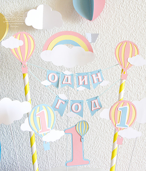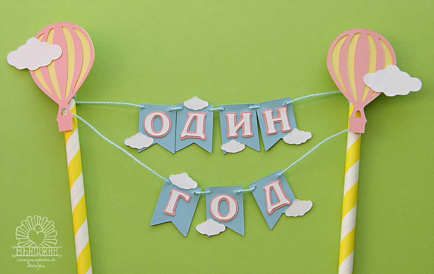 -Топпер на торт с двумя гирляндами флажков прекрасно подойдёт на небольшой первый тортик для малыша