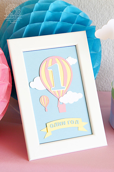 - Это объемная открытка с воздушным шаром, цифрой 1 и подписью.